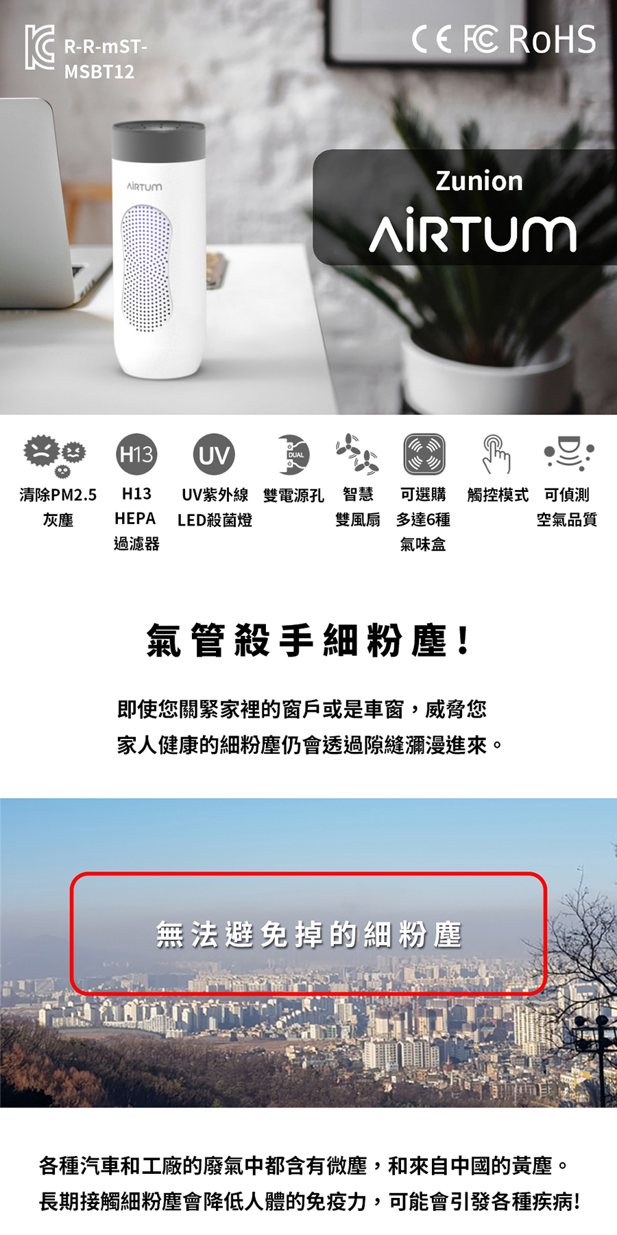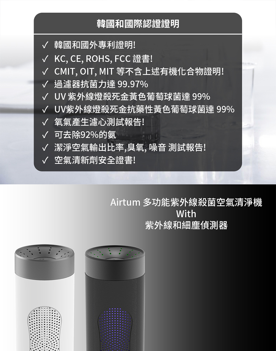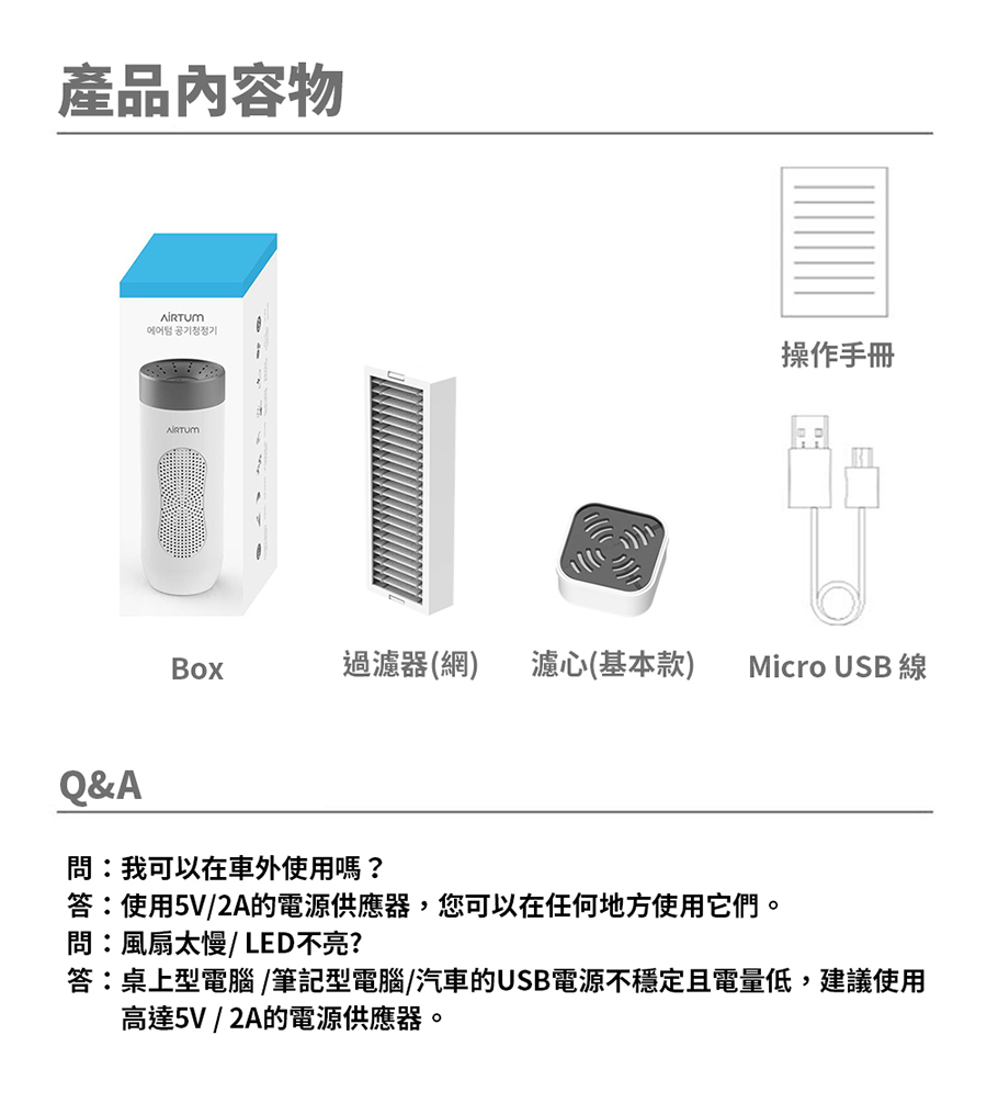 內容物:Airtum 多功能紫外線殺菌空氣清淨機(白色)x1、Micro USB線x1