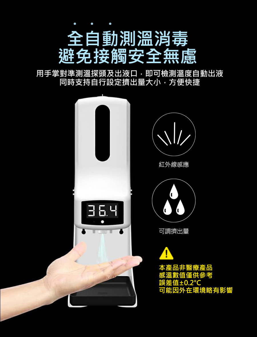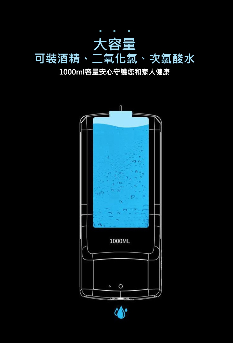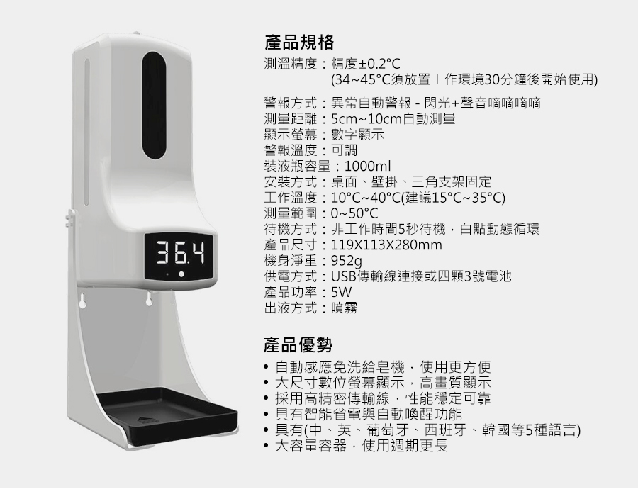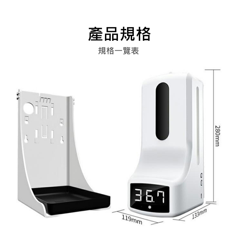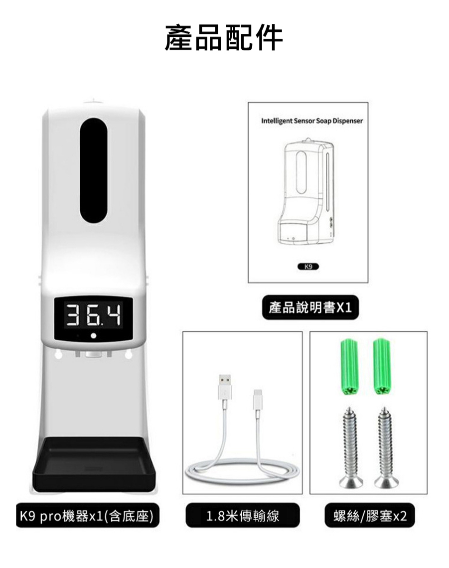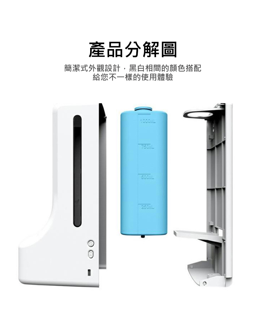 装液瓶容量:1000mL內容物:主機x1、充電線x1、底座x1、螺絲X2、膠塞x2、說明書x1